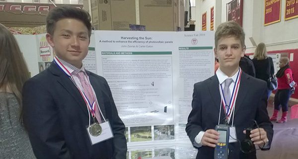 John Zavras and Carter Eaton received an honorable mention for their experiment with photovoltaic solar panels. Photos courtesy of Kathy Horigan Dye