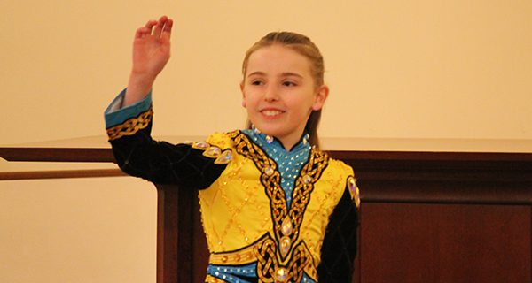 The only non-musical piece was an Irish step dance performance from Alice McGowan. McGowan’s music came from the emcee’s phone, but her performance was impressive enough that it had kids both moving up to the stage and standing on top of the church pews to see her better.