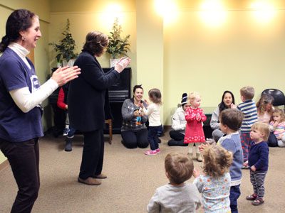 With the tots feeling giggly and excited, the group sang “Shake the Sillies Out” and other engaging songs for the kids before Marta read “The Big Book of Happy.”