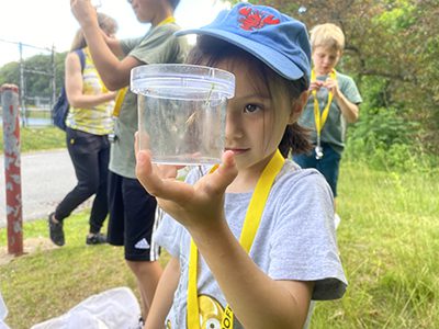 Bugman provided students with magnifiers, sweep nets, and jars to aid their journey. Students practiced twisting their wrists and swinging their nets back and forth to learn the proper technique, making sure the bag of the net was open for bugs (as they tend to fly upwards).