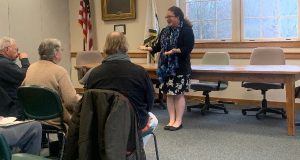 After Kelliher greeted the attendees, she welcomed Senator Rebecca Rausch to speak to the guests. Senator Rausch thanked the seniors for attending, while extending her thanks for their partnership, collaboration, and insights about the town. Senator Rausch then made a formal welcome to Marsette, with whom she will be working as he serves as the town administrator.