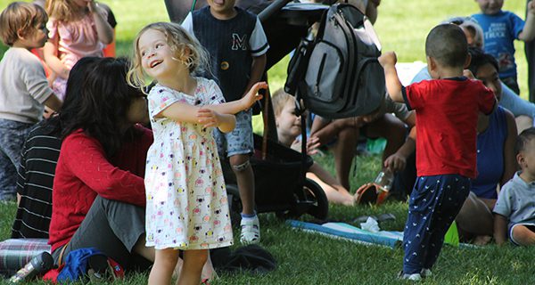 The Elm Bank Super Awesome Fun Time program used to be held around the gardens’ sand pit, but was moved to let the children sit in the shade. While families are encouraged to check out the gardens after the program is over, Tegeler and Weston made sure the kids saw it in its near entirety during “The Ants Go Marching.” Holding a portable speaker, the librarians led the children in a march around the garden, before concluding the day with “The More We Get Together.”