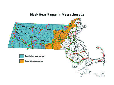 The range of the black bear in Massachusetts is moving steadily eastward. Photo courtesy of Mass Division of Fisheries and Wildlife.