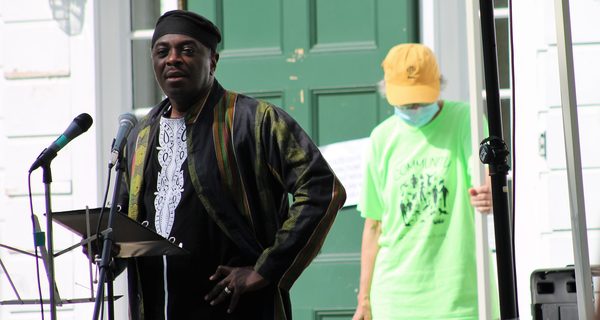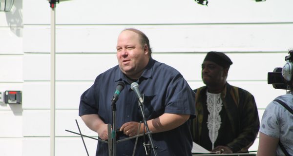 The day's final speaker was Jamele Adams, who spent much of the day keeping the tent from being blown away, which he used as a metaphor for all the races and genders working together. Adams read his poem, “Who Shot You”, which effectively outlines the various places people of color have been shot, using “shot” as a repeating rhyme until it culminates with: “Can you imagine a place where you cannot get shot? I cannot.”