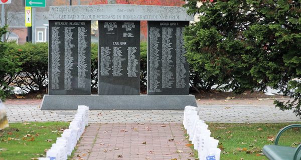Instead, the American Legion Auxiliary opted to keep the bags, but abandon the ceremony, in hopes that people would still visit the memorial while not clustering and failing to maintain social distancing rules. Michelle Doucette and two other volunteers were setting up the bags at noon on Veterans Day, and explained the rationale behind the Legion’s decision.