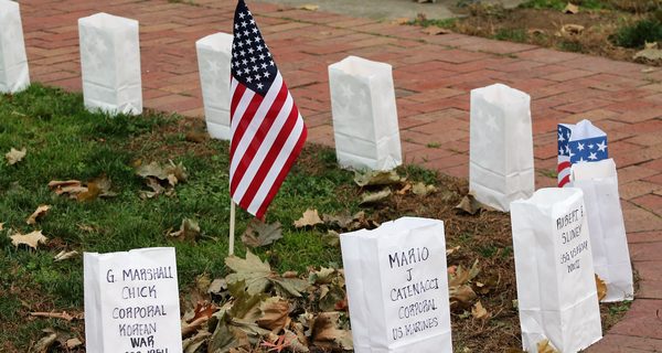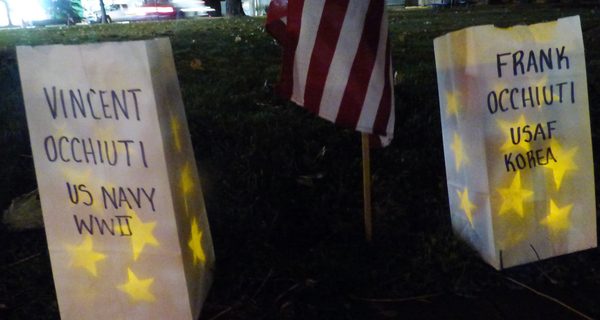 The bags remained lit until about 8:30 on Veterans Day; although there was no ceremony, there was plenty of time for people to visit them.