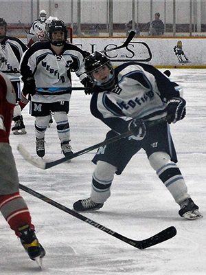 Although Medfield would find themselves in a 0-2 hole at the end of the first period, even as they were losing by multiple goals, there was no question — they were the better team. Medfield dominated early, but a Megan MacTavish shot hit the side of the net, a Catherine Bannister shot went wide, and suddenly, on the counter, Wakefield scored at 8:08. Medfield didn’t seem flustered until about two minutes later, when Wakefield scored again at 6:50. Now down two goals in a game they were dominating in every way but the score, the Medfield fans began to get nervous. Wakefield struggled to get the puck out of their zone, but Medfield couldn’t score, and it was 2-0 Wakefield after one.