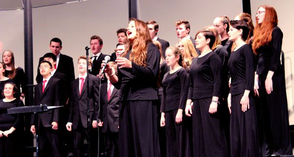 The girls also sang together, performing “Lunar Lullaby” before the gentlemen returned to the stage and the entire concert chorus sang a gospel-style rendition of “How Can I Keep from Singing?” with soloists Harry Dorer, Alessandra Kelley, and Zoey Pollard.