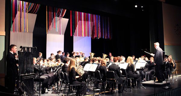 As the chorus helped break down the risers and set up for the band, the audience expressed its pride for the town’s enthusiasm for music. The auditorium, almost completely filled with friends and family members of the performers, then settled down once director Douglas Olsen joined the band on stage to continue the concert.