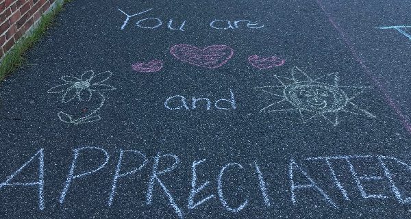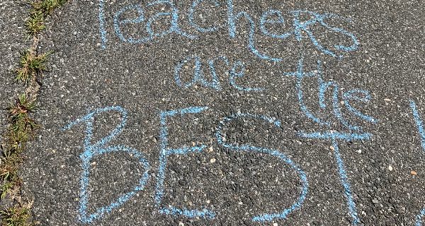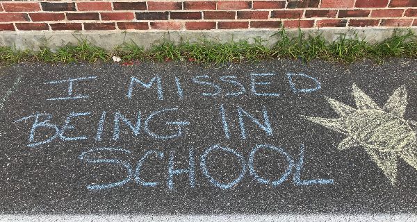 The PTO recently organized a "Chalk the Walk" for Medfield students to come welcome the staff back to the building week. The kids really showed their support with positive messages and artwork that the PTO hopes will start this unprecedented year off on a high note.