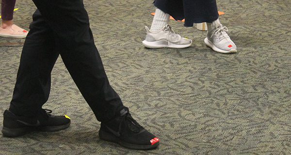 Pieces of red and yellow tape helped youngsters distinguish left from right.