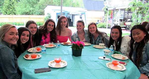“Good. Fill up and come back and get tea,” said Ginnie Cusack, a member of the Hannah Adams Club. She spent much of the party supervising the tea pot and ensured that each girl got her cup of tea, with the desired amount of milk and sugar, while chatting with them about their future endeavors after graduating. “Where are you headed?” she asked one girl, who came to get a cup of hot tea.