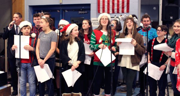 Medfield chorus students entertain the pasta diners at the annual ‘Spaghetti with Santa’ to benefit Medfield Public Schools’ music program.
