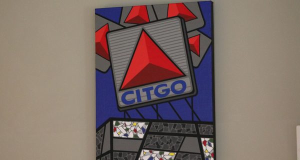 The pieces are available for purchase. Ranging from around $150 all the way up to $7,000, some of the pieces had been sold already, unsurprisingly, including the Fenway-inspired acrylic on canvas “Floating Citgo Signs in Kenmore Square.”