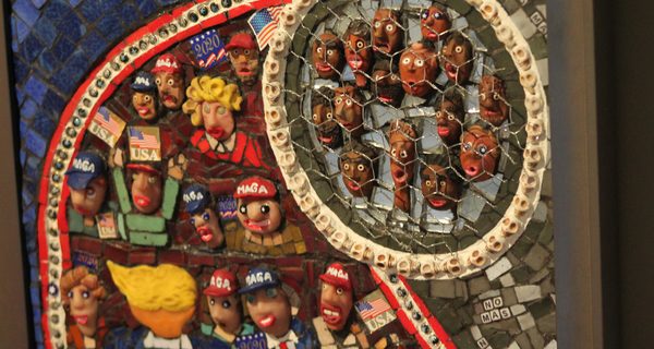 One of the more unique mediums, and definitely the most controversial piece, was “Maga Tsunami”, a media mosaic by Jean Cummiskey.