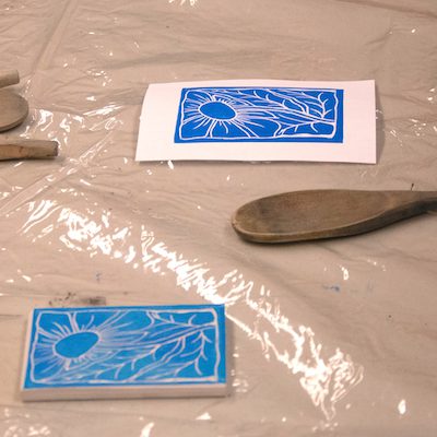 And the piece doesn’t have to end with the first test print. After rolling the ink on the plate, then to the block and seeing how it comes out on paper, you could go back and change the block itself to perfect the print. Cleaning lines and refining shapes is common, it is such a malleable medium.