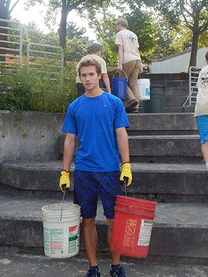 As part of his Eagle Scout project, Needham’s Stephen DeMaio, with the help of about ten other Scouts from Troop 13 Needham, created an outdoor classroom at the Pollard Middle School.