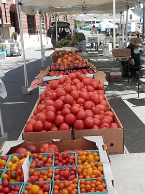 This week, the Market will have fresh produce including award-winning tomatoes, corn, leeks, romano beans, apples, eggplant, peppers, cucumbers, pickled cucumbers, cousa zucchini, summer squash, all varieties of lettuce, wild blueberries, raspberries, white nectarines, white and yellow peaches, all herbs, flowers, potatoes, and more.