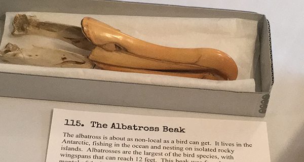 Gloria continued to explain some of the reasons these objects are displayed at this time and not before. “Sometimes, you have stuff that’s great but you just have other stories to tell, or you have a better way to tell their own story. For example, instead of using the albatross beak, we used the Antarctic flag, which is basically the same story but we’re more certain of its origin,” she said. “So it’s an opportunity to show off a few things without the formality of having the know all of the exact information without knowing all of the things a museum, should, perhaps, know!” Gloria’s interest and fascination with these objects shone through, and her joy in being able to display them came across through the way she found such interest in objects others may simply pass by.