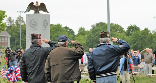 The rain cleared just in time for Needham’s Memorial Day Ceremony last Monday afternoon at Memorial Park. While many nearby towns' ceremonies were significantly altered, Needham’s went on without a hitch, with many media outlets on hand to both memorialize the dead and salute Needham’s soon-to-be one-hundred-year-old World War II veteran, George Yered.