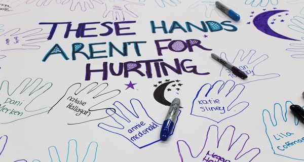 “[The reports are] from Jane Doe, Inc., and it’s basically the reports of people who were victims of an intimate relationship and we share their stories,” explained senior co-chair Jenna Shaffer. “It just to reiterate the fact that it’s a big issue and especially with everything going on in the news today, we’re trying to bring awareness into our community”