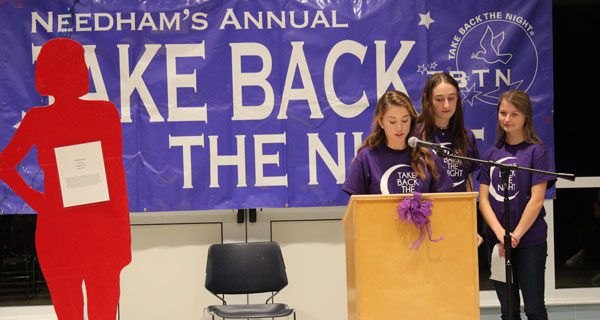On November 16, an outstanding group of over sixty Needham High School students hosted the eleventh annual Take Back the Night event in the school’s cafeteria. Although it’s a painful and uncomfortable subject to broach, the evening spreads awareness for sexual assault and domestic abuse.