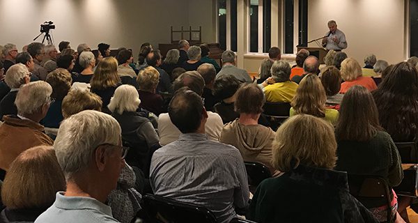 John Kirk of Progressive Needham hosted the event. Kirk began by introducing the governor and the governor’s wife, Kitty Dukakis, to the audience. Then, he described the purpose of the evening.