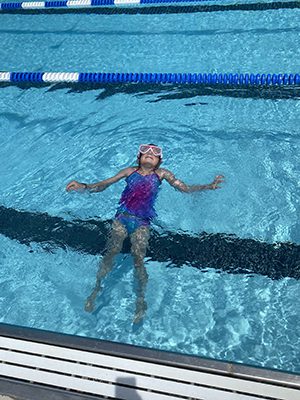 Caroline (aged 7) stays cool and floats during her deep water swim test.