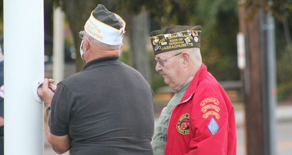 Last Thursday afternoon, Needham honored the town’s veterans who received the Purple Heart, one day before National Purple Heart Recognition Day. While the Purple Heart Flag was raised and the names of the town’s 86 recipients were read, the ceremony was intentionally kept low-key because of the issues with gathering in large groups due to COVID-19.