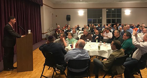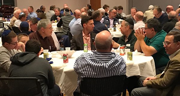 Former Boston Red Sox reliever Craig Breslow enjoys a repast with members of the community during Temple Aliyah’s annual Men’s Club event.