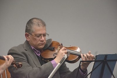 Second was, again fittingly, second violinist Cecil Pereira. If you’ve heard the term “playing second fiddle,” that is quite literally his job. They help make up the body of the song behind the melody. But Pereira brings up another thing stringed instruments can do, pizzicato. Italian for “picked” or “plucked,” rather than drawing their bow across the strings they use their fingers and pluck the strings to make the notes. The whole quartet played a piece that required all of them to pluck their instruments, as if the notes were jumping into our ears.