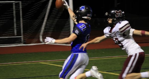On Millis’ first possession, Raiders defensive end Dylan Rogers broke through the left side of the line and grabbed the Mohawks’ quarterback, which caused him to rush his pass attempt. The ball floated into the secondary, where Mekhi Robinson picked it off and returned it to the visitors’ 25-yard line. However, the Raiders offense sputtered, and they turned the ball over on downs. The Millis offense could do no better and they punted the ball back to the hosts, who took over near midfield.