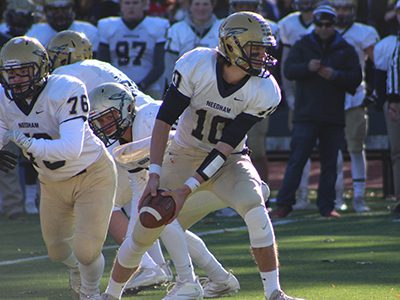 With time winding down in the fourth quarter and his team trailing by five, Maiona put together the drive of the season for Wellesley, moving the ball down inside the red zone to the Needham five-yard line with the chance to retake the lead. After two Wellesley runs were stuffed at the line of scrimmage, a false start penalty, and a sack moved the ball back to the Needham 14, the fate of the game came down to a fourth-down and goal. On the fourth-down play, Maiona took the snap out out of the shotgun and dumped it off to Moore on a wheel route. Moore made a man miss and scampered 14 yards to the end zone for the go-ahead score, followed by a successful two-point try by Maiona on a quarterback keeper to push the Wellesley lead to 23-20.