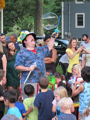 Sherborn’s summer reading program kicked off with Alex the Jester performing medieval comedy for families of young children at the Sherborn Community Center on Tuesday, June 27.