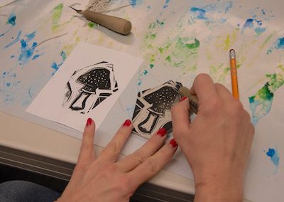 Needham Free Public Library (NFPL) welcomed back Needham Poet Laureate Anne E. G. Nydam to host a class introducing people to a unique art skill that she pairs with her poetry, block printing!
