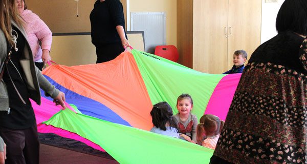 When summer temperatures climb too high for comfort, "fun in the sun" can quickly lose its appeal. On July 8, the Medfield Public Library offered a cool alternative to outdoor pastimes: forty fun-filled minutes of Parachute Play. The program involved a story, a craft and, of course, a parachute.