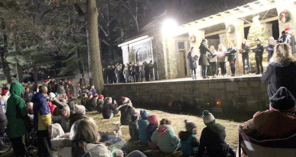 Maura O’Gara of the Trustees of Reservations invited all to gather at the park’s Music Court on December 8 to witness the lighting of a 10-foot-tall balsam fir tree and enjoy carols from the Walpole Children’s Chorus and the Walpole High School Chorus, under the guidance of music teacher Ashley Prickel.