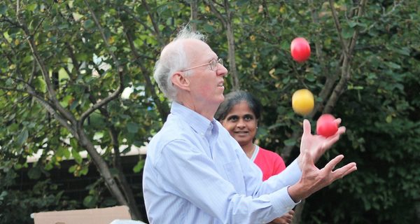 “I love juggling and I really encourage other people to learn, so I try and do a workshop every summer," he explained. "I’ve probably done over fifteen in Walpole. They’re not always through the Library Friends; I’ve done them through a church. But I’ve done many workshops over the years”