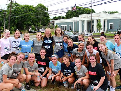 Members of the field hockey and lacrosse teams at Walpole High who participated in the 5K take a group picture after the run. Photos by Daniel Curtin