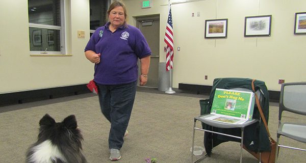 On Wednesday, September 18, excited library patrons came to the Walpole Library Community Room for a dog safety demonstration designed to teach them about forming better relationships with their beloved companions. Merida, a collie, helped owner Cathy Acampora with the demonstration, along with Caleigh Brown and her dog, Gromit, a young Bernese mountain dog.