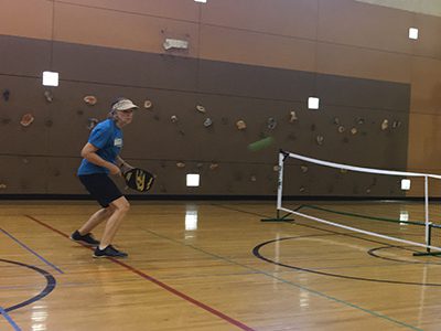 Every Wednesday from 12 to 3 p.m., Wellesley Recreation Department hosts pickleball in the gymnasium.  Photos by Katrina Margolis