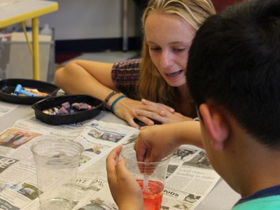 As the students’ patience dwindled, some popped the Skittles into their mouths, noting that the flavor was still there even when the color on the outside had dissolved. Some of the students even dared each other to drink the Skittle water as they cleaned up and prepared for the next experiment.