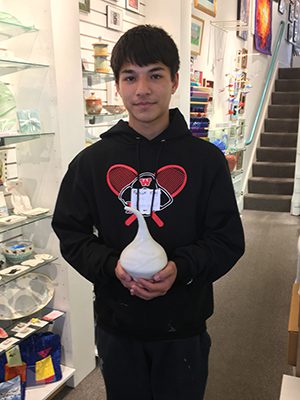 Every year, the students have a show at the Wellesley Public Library, which is just down the street. “We send out a mailing to all students who are in that art show, which is K through 12, and on the bottom of that, we write that we have this show as well … there’s more foot traffic and it helps the parents to come here and then go there,” Larson said. This year, there were 14 ceramics students whose work was displayed, as well as 12 metal students. “It’s our honors classes,” Larson added.