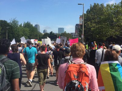 An estimated 40,000 people attended the counter-protest planned for this rally and despite a few arrests (approximately 33), Evans felt the event was “fairly peaceful” and there were no acts of vandalism or major injuries. By 3:30 p.m., the crowd began to dissipate, but shortly after 5 p.m., police used pepper spray on Washington Street in Downtown Crossing to quell chaos between officers and some counter-protesters which also cleared up by 5:45 p.m.. Evans said “most people were well-behaved” and that "99.9 percent of people here were here for the right reason, and that was to fight hate and bigotry.”