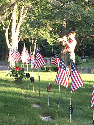 That ceremony occurred just last week, and the Department of Veterans' Services and the Wellesley Veterans' Organizations expressed their gratitude by thanking all the volunteers who took time out of their day to attend, calling the effort “most solemn and patriotic.”The Girl Scouts led the "Pledge of Allegiance.” There were two High School trumpeters on hand to play “Taps” in echo-effect - that is, in rapid succession with only a few staggered seconds in between. According to Amy van der Wal and scout-daughter, Johanna,