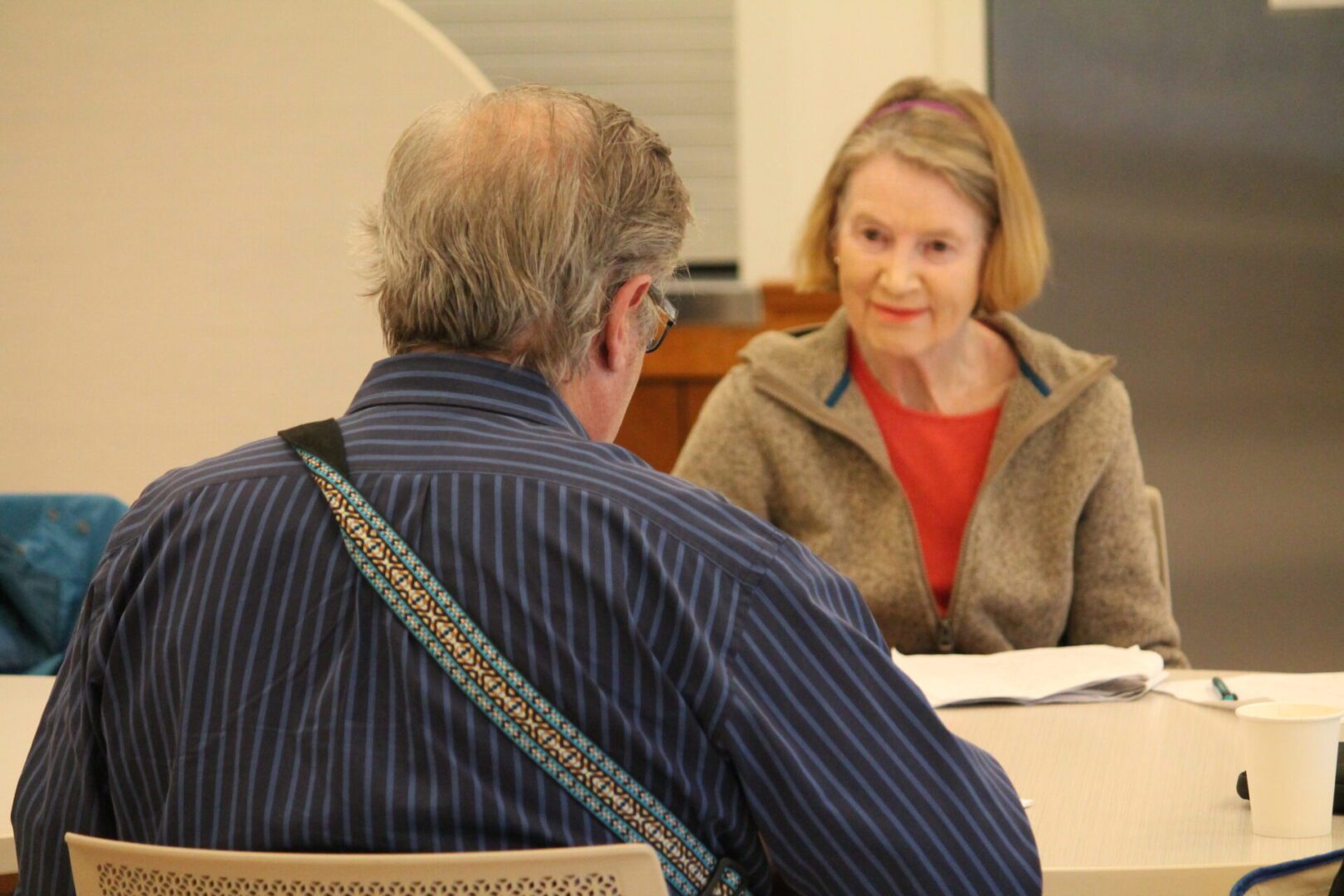 Next, the duo moved to Ireland, as both played “Oh Danny Boy,” a tune they had worked on before. Metraux explained that with picking, “the difficulty is that it’s harder to keep the rhythm,” and began to whistle the tune to help himself. Marie Taylor had another issue with her playing: at various times, she squinted at her sheet music and declared “I would probably be doing better if I had my glasses.”