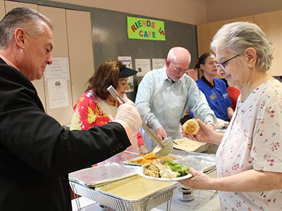 Selectman Mike Walsh helps serve the seniors a delicious Thanksgiving meal at the Westwood Council on Aging.