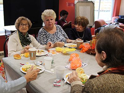 Women at the Westwood Council on Aging’s Thanksgiving luncheon enjoy a delicious meal and terrific company.