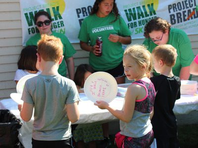 The Temple Beth David Youth Group organized a craft table for children to state their reasons for walking at the Interfaith Walk for Hunger. Photos by Laura Drinan