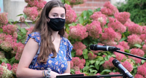 Tuesday night in front of the Westwood Town Hall, the Rotary Club of Westwood and Westwood Youth & Family Services honored this year’s four recipients of the Westwood Recognize a Youth (RAY) Award. While there were changes, like the ceremony being held outdoors and congratulatory handshakes being eliminated, the crop of generous and altruistic young people was as strong as ever.